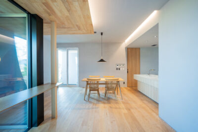 無機質なグレーを基調としたシンプルなデザインの中に、木のあたたかさを感じる住まい。