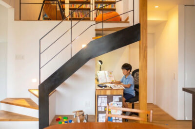 子ども部屋にこもるのではなく、リビング横やダイニング近くにスタディスペースを。