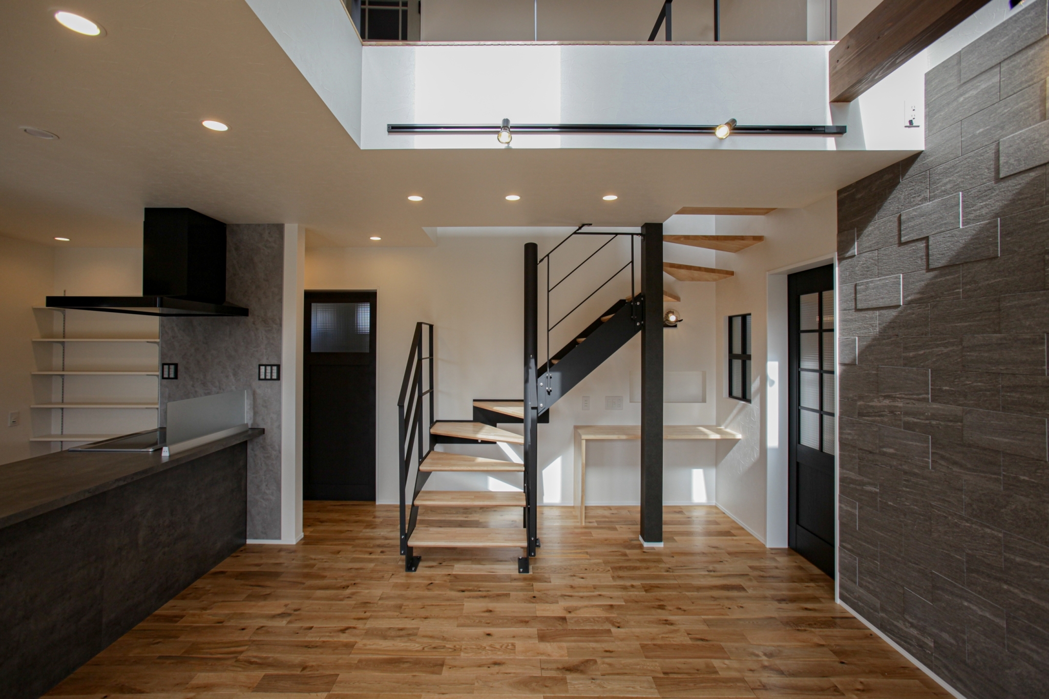 大きな吹き抜けを中心に家族がつながるスタイリッシュなお家。