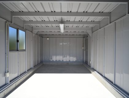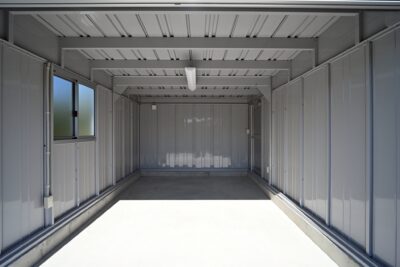 雨風をしっかり防ぎ、天候や時間を気にせずメンテナンスできる空間です。