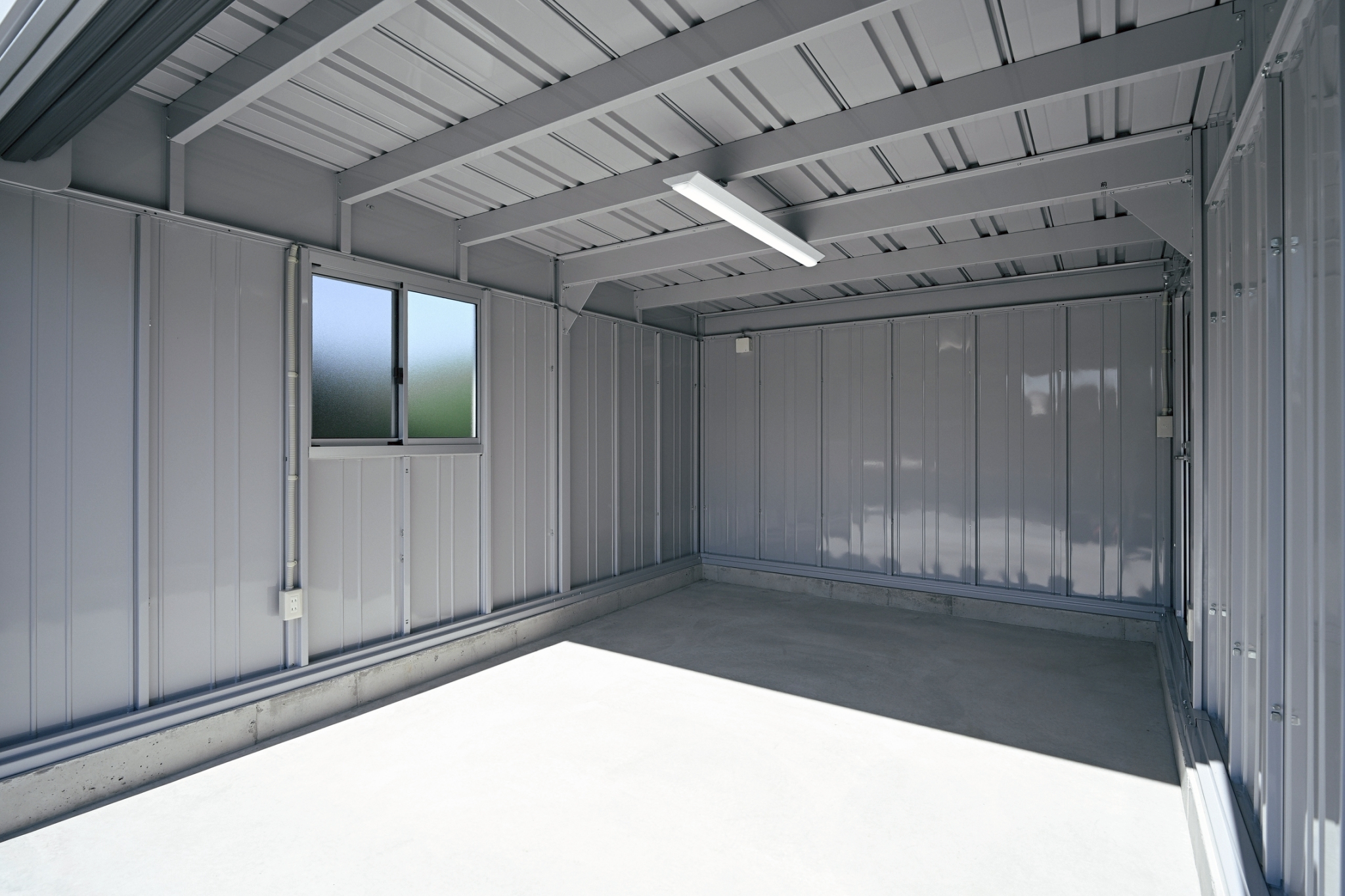 雨風をしっかり防ぎ、天候や時間を気にせずメンテナンスできる空間です。